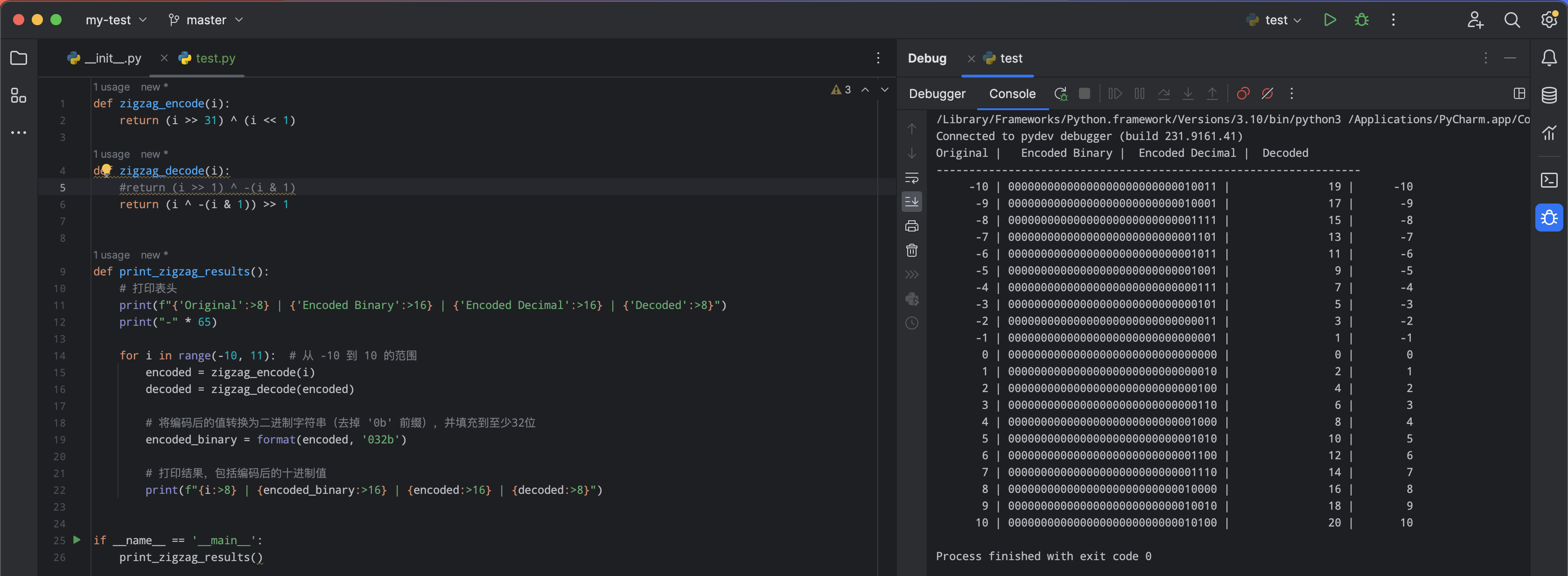 protobuf 中使用的逻辑基本一致,但是里面包含了 varint 编码逻辑。如: 32bit 编码, 32bit 解码。不太好测,方便起见,直接使用 python 的如下实现: