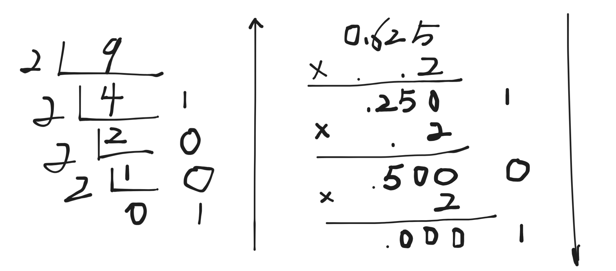 在二进制中: \(11000 = 1.1 * 2^4\), \( 0.0101 = 1.01 * 2^{-2}\)