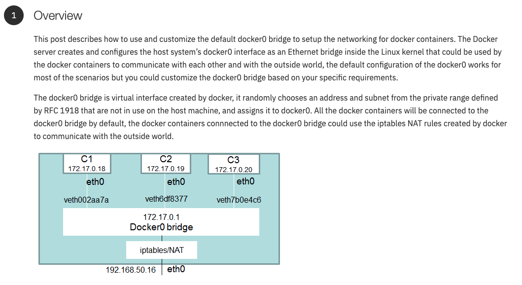 - http://web.archive.org/web/20201109220442/https://developer.ibm.com/recipes/tutorials/networking-your-docker-containers-using-docker0-bridge/