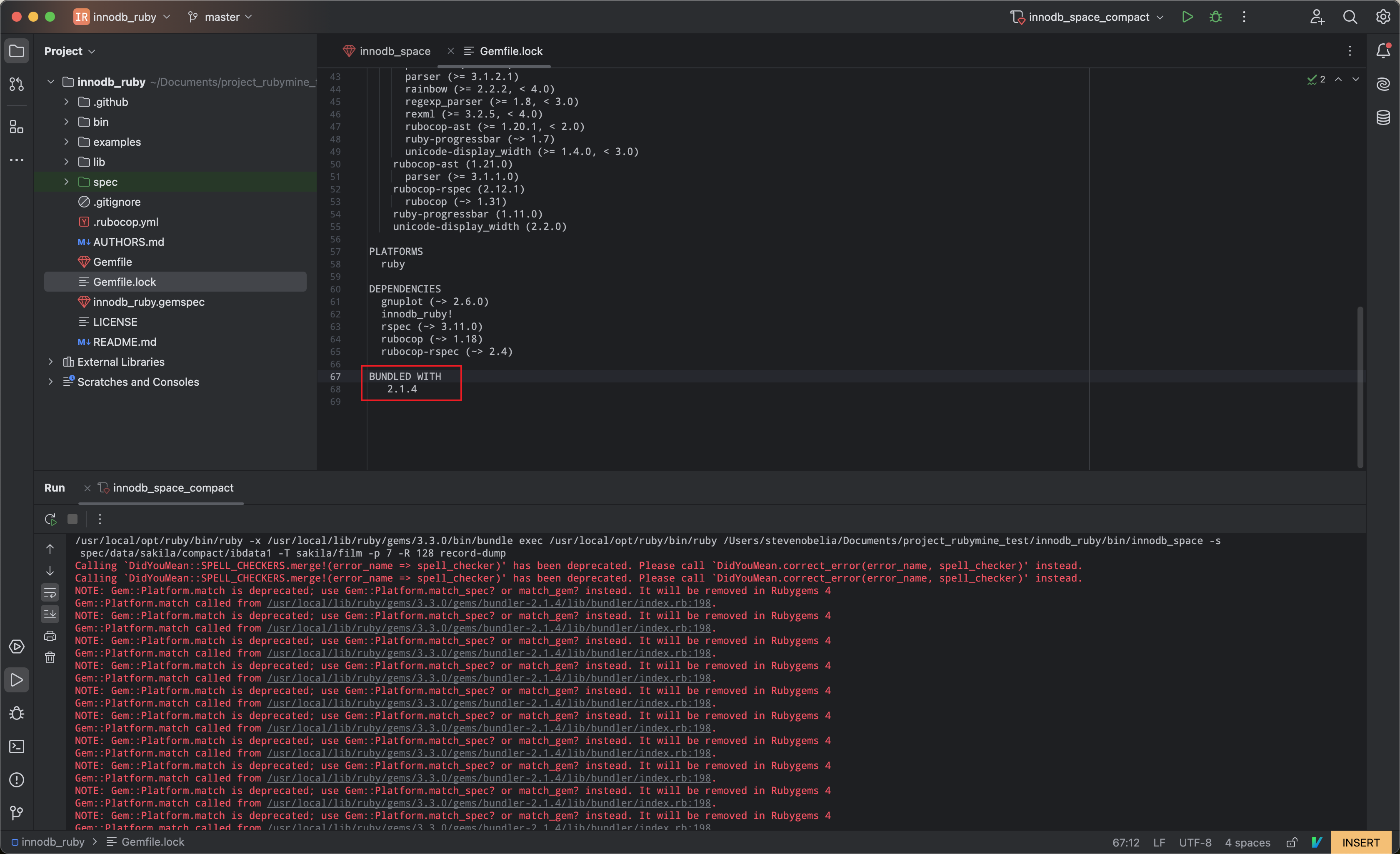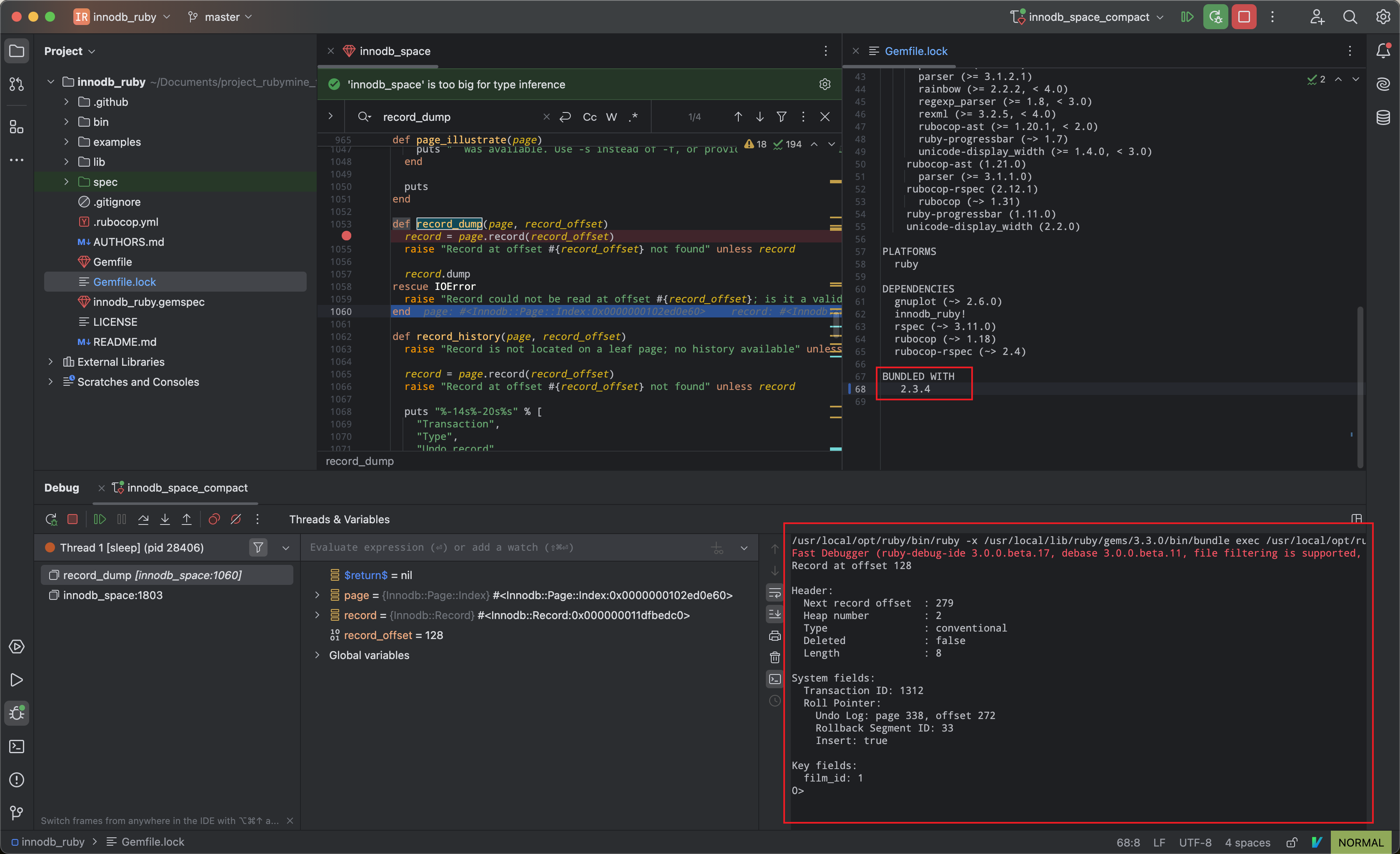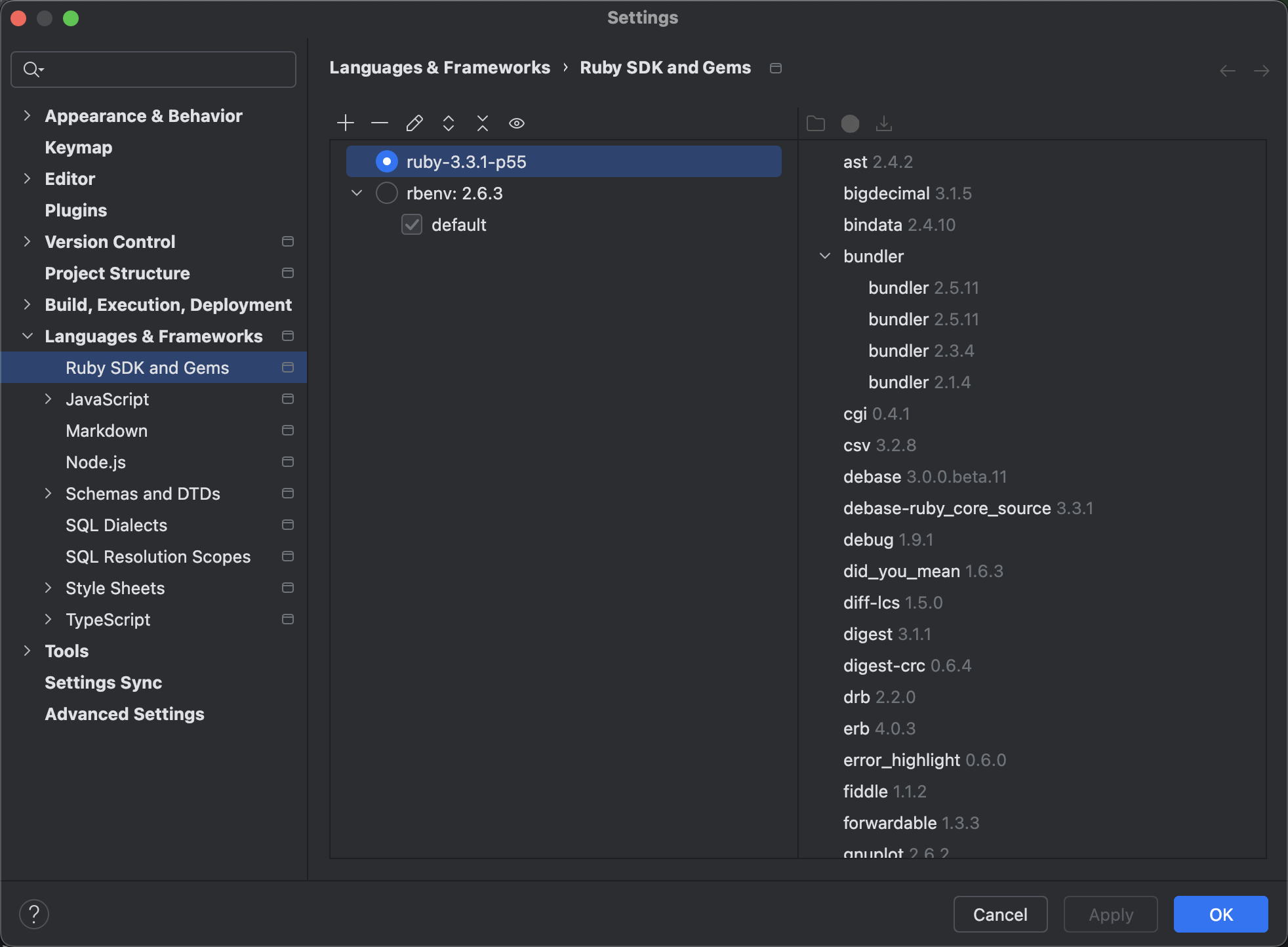 IDE中使用了最新版的 ruby sdk(ruby-3.3.1-p55) 环境,但是由于项目中使用的配置