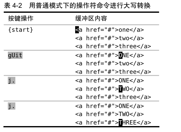 20).深入理解可视模式: 使用:<C-g>在 visual 模式和 select 模式切换,选择模式相当于普通编辑器中选择后直接输入替换那种效果。21).选择高亮选区: 【v:面向字符,V:面向行,<C-v>:面相列块,gv:重选上次高亮区域】,重复会取消选择,比如连着按两次v。22).重复执行面向行的可视命令:Vj>.,Vj2>23).只要可能,最好用操作符命令,而不是可视命令:vitU可是模式中会影响部分(等长),gUit普通模式在的操作符刚好。