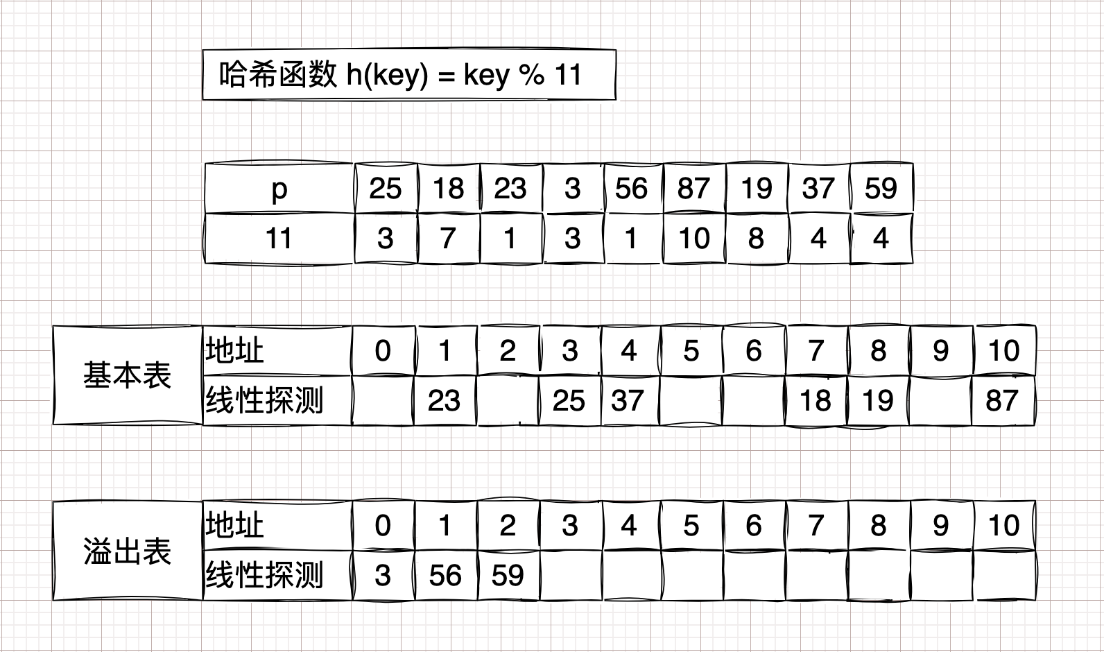 [25, 18, 23, 3, 56, 87, 19, 37, 59]。开放定址法 #