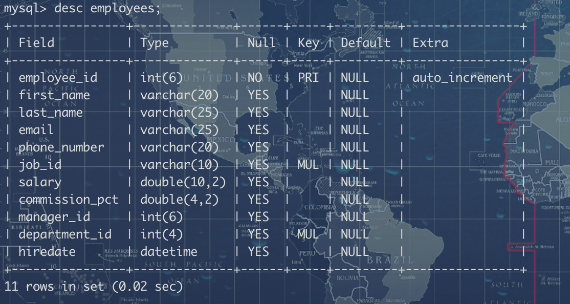 后缀 英文释义 描述 _ai accent insensitive 不区分重音 _as accent sensitive 区分重音 _ci case insensitive 不区分大小写 _cs case sensitive 区分大小写 _bin binary 以二进制方式比较 mysql对库和表的概览查询 #