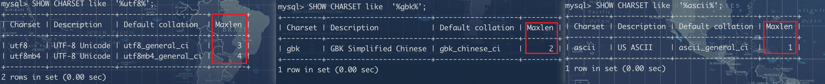 - 假设某个字符集中表示一个字符最多需要使用的字节数为 W ,也就是使用 SHOW CHARSET 语句的结果中的Maxlen 列,比方说 utf8 字符集中的 W 就是 3 ,gbk字符集中的 W 就是 2 , ascii字符集中的 W 就是1 。