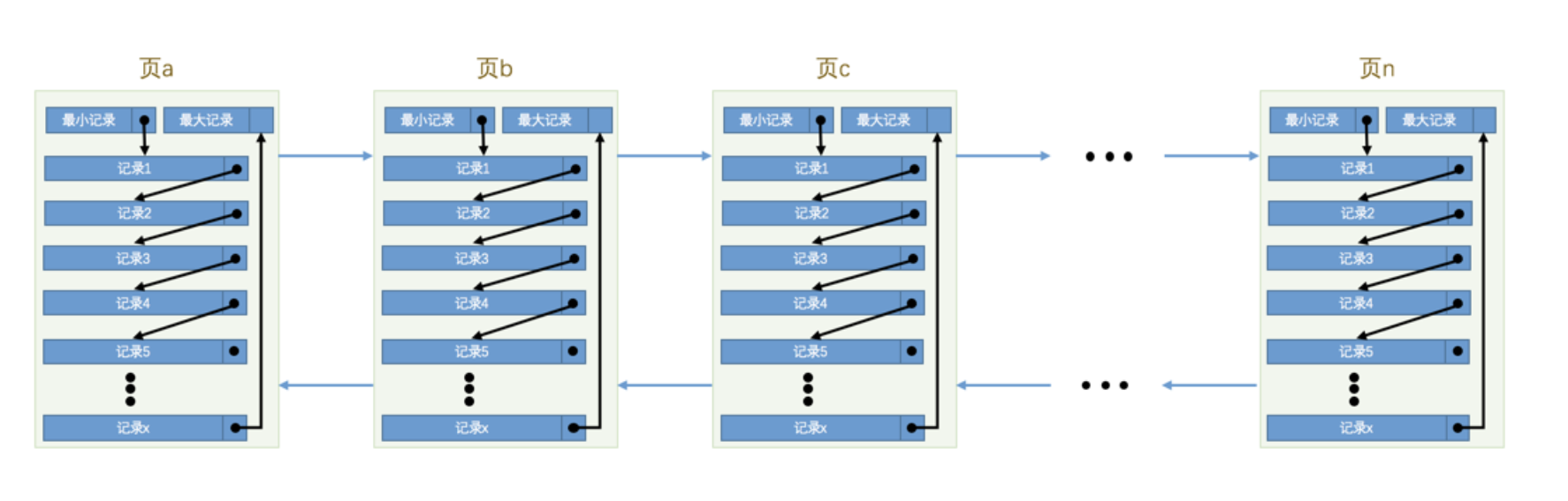 下一个数据页中用户记录的主键值必须大于上一个页中用户记录的主键值。
