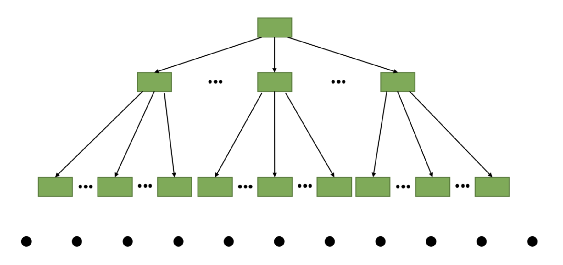 如果 B+ 树有3层,最多能存放 \(\color{red}{1000×1000×100=1\hspace{0.2em}0000\hspace{0.2em}0000}\) 条记录。