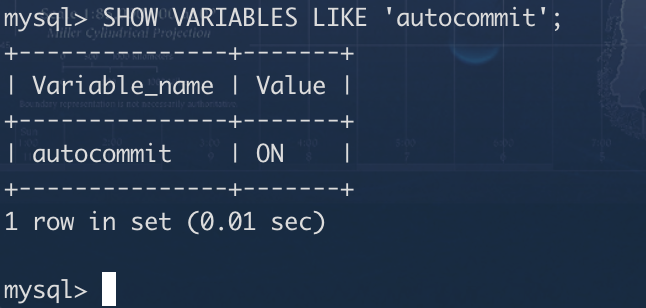 autocommit:SHOW VARIABLES LIKE 'autocommit';