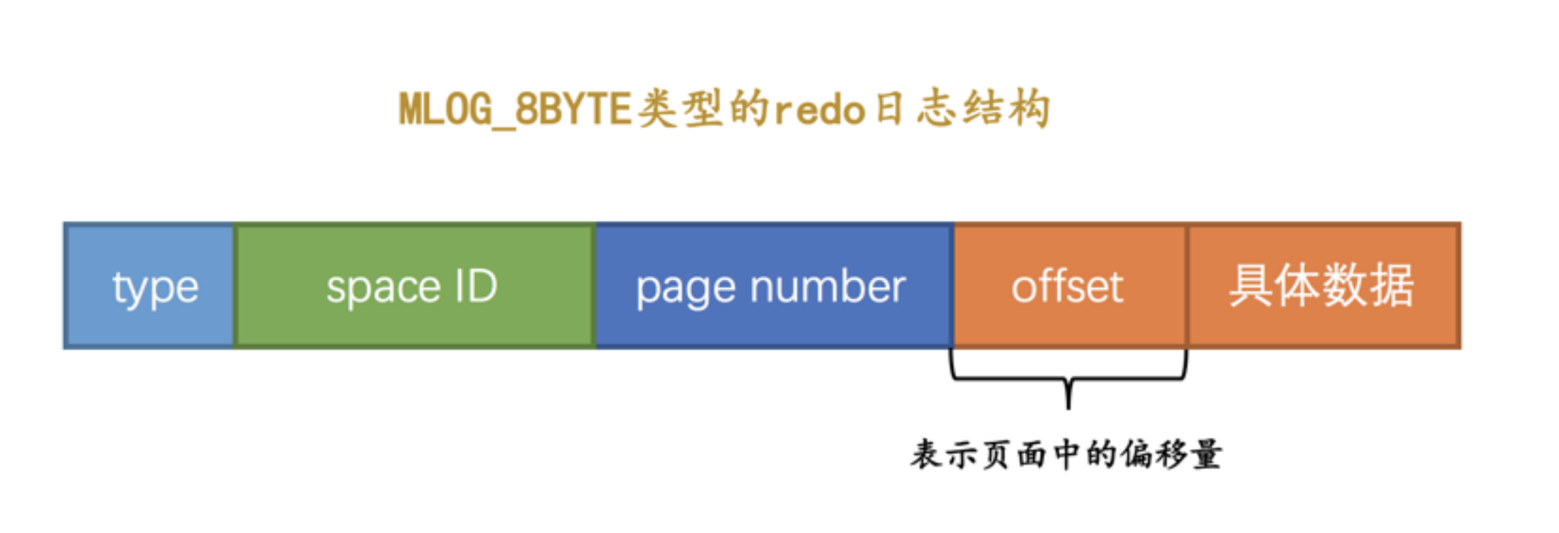 我们上边提到的 Max Row ID 属性实际占用8个字节的存储空间,所以在修改页面中的该属性时,会记录一条类型为 MLOG_8BYTE 的 redo 日志, MLOG_8BYTE 的 redo 日志结构如下所示: