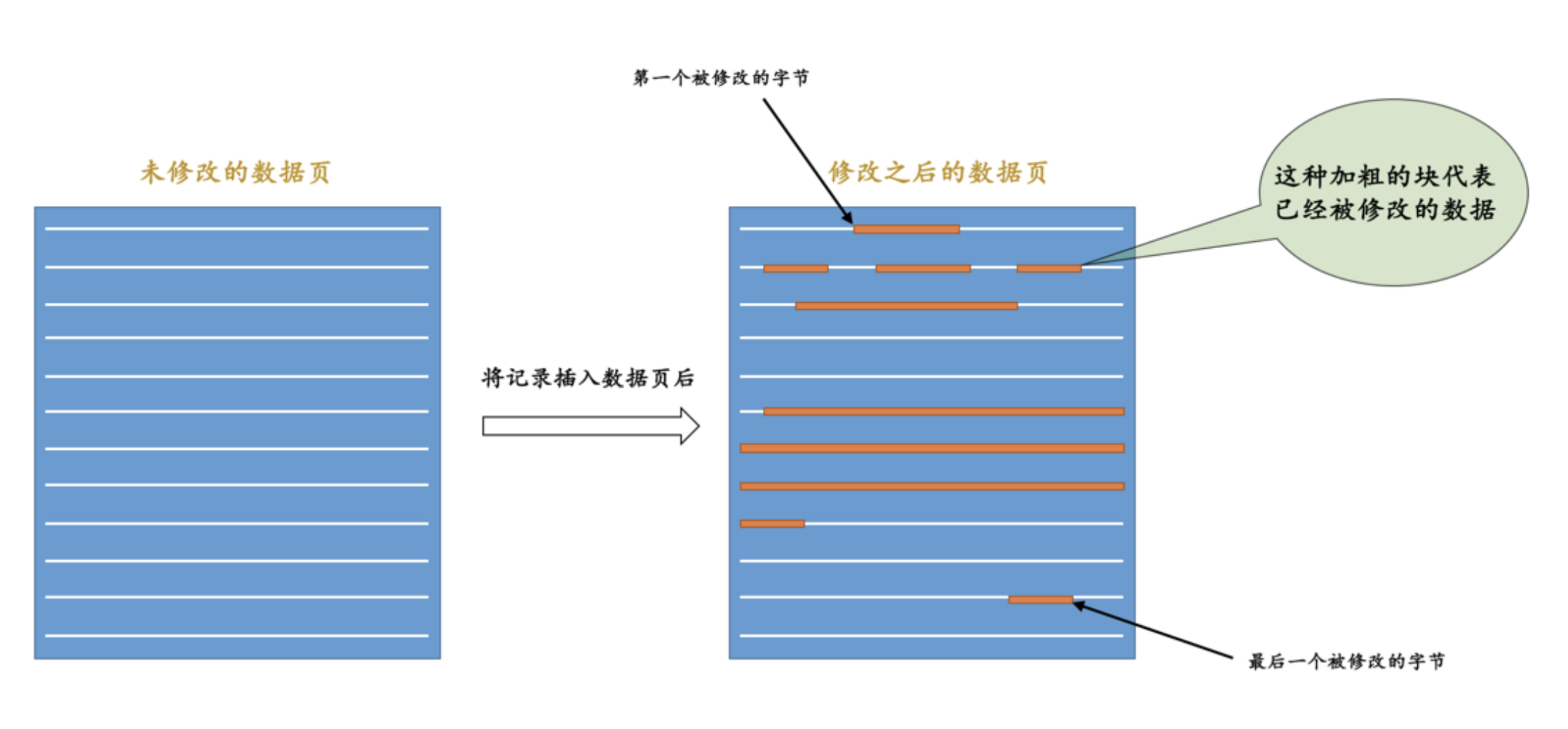 从图中也可以看出来, 第一个被修改的字节 到 最后一个修改的字节 之间仍然有许多没有修改过的数据,我们把这些没有修改的数据也加入到 redo 日志中去岂不是太浪费了~