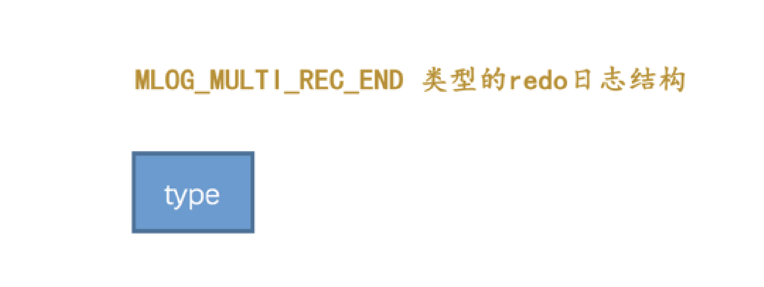 如何把这些 redo 日志划分到一个组里边儿呢?设计 InnoDB 的大叔做了一个很简单的小把戏,就是在该组中的最后一条 redo 日志后边加上一条特殊类型的 redo 日志,该类型名称为 MLOG_MULTI_REC_END , type 字段对应的十进制数字为 31 ,该类型的 redo 日志结构很简单,只有一个 type 字段: