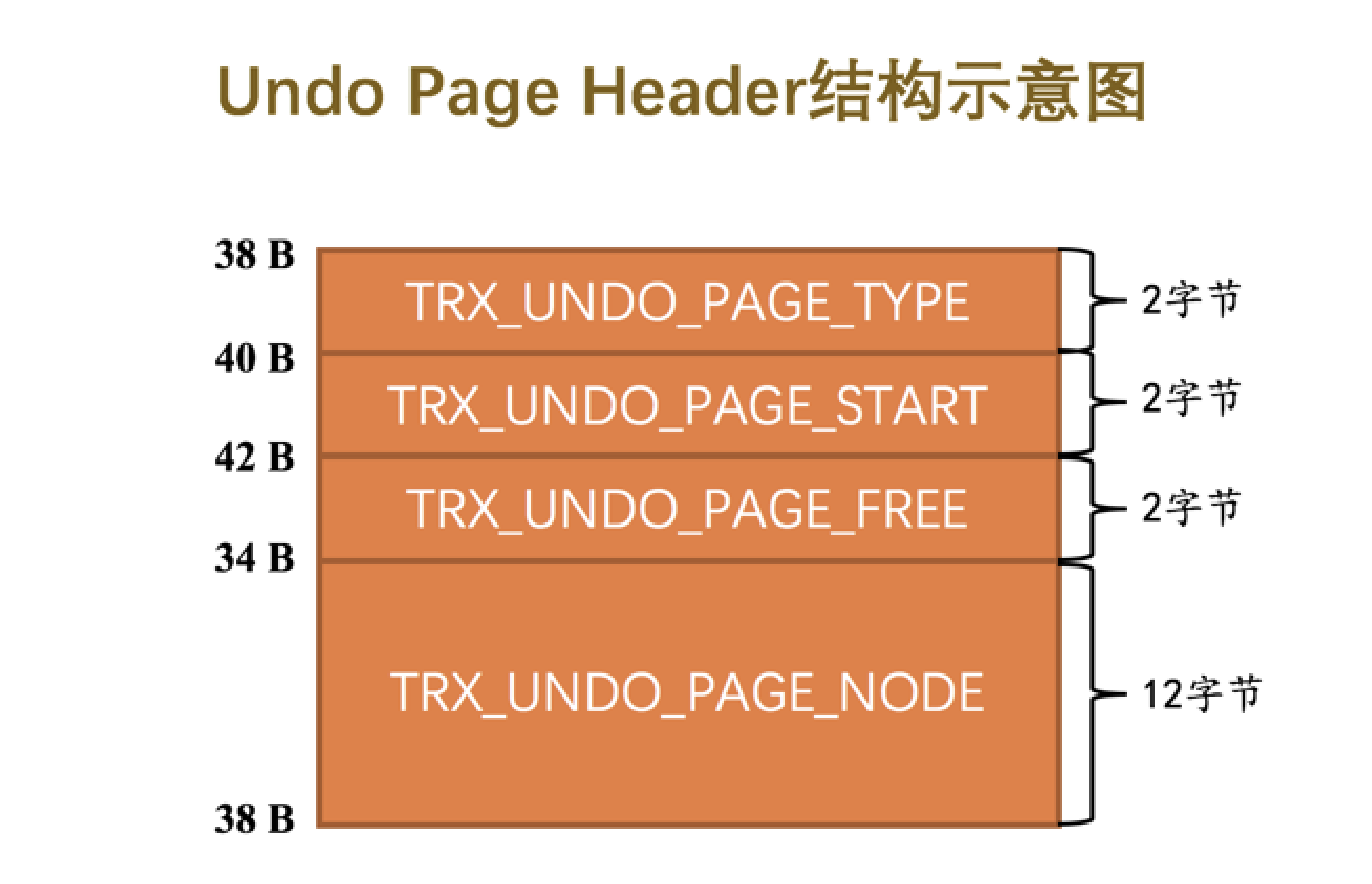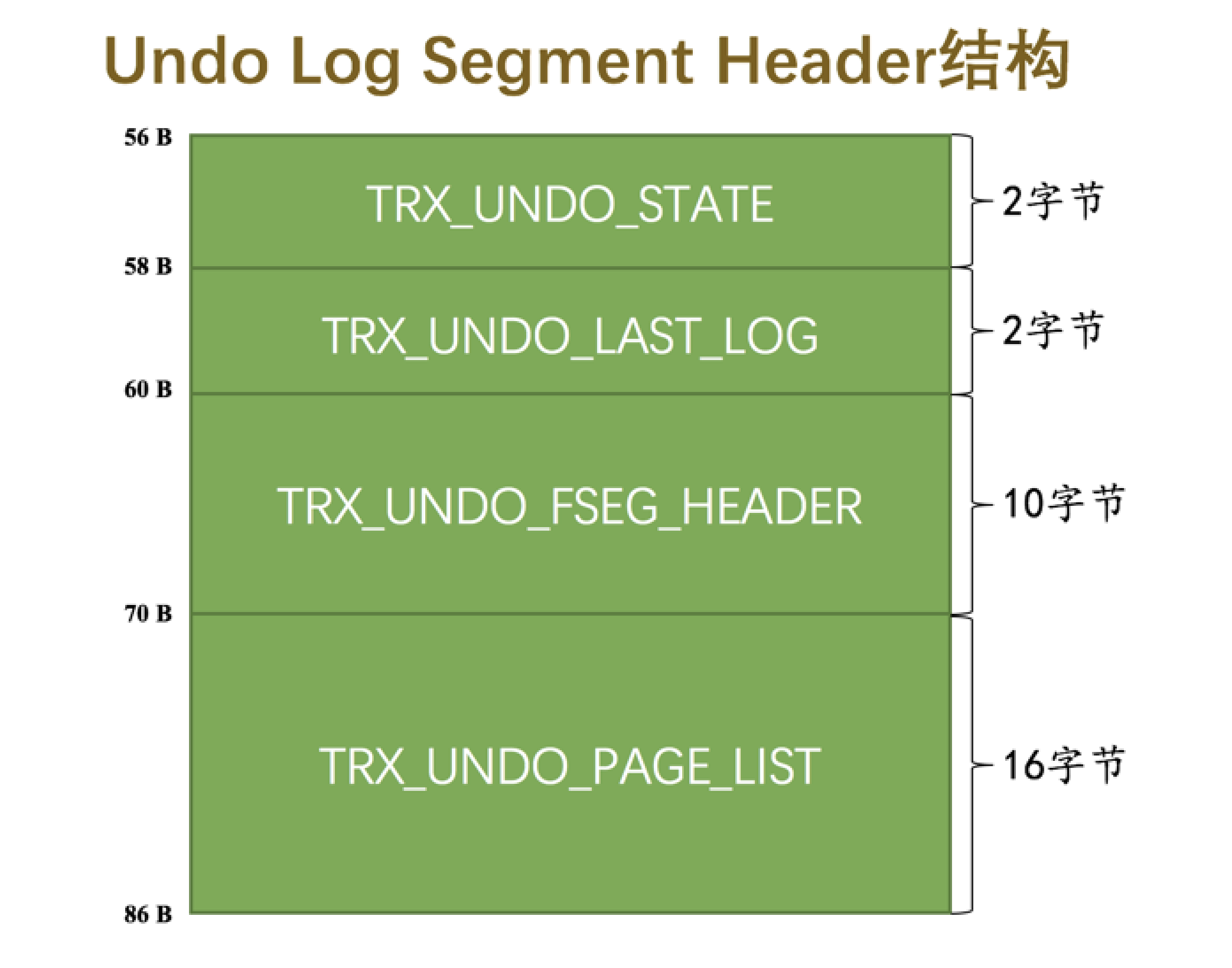 可以看到这个 Undo 链表的第一个页面比普通页面多了个 Undo Log Segment Header ,我们来看一下它的结构: