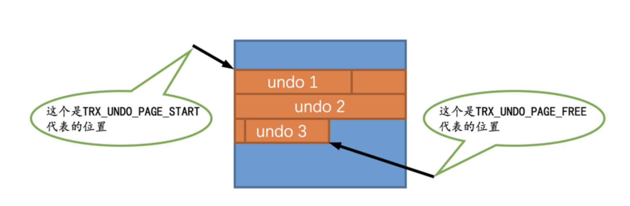 当然,在最初一条 undo日志 也没写入的情况下, TRX_UNDO_PAGE_START 和 TRX_UNDO_PAGE_FREE 的值是相同的。