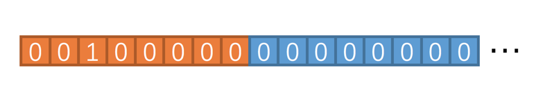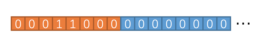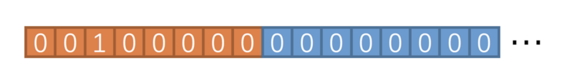 type_mode = 3 | 32 | 0 = 35一堆比特位因为 number 值为 3 、 8 的记录 heap_no 值分别为 3 、 4 ,根据上面列举的比特位和 heap_no 的映射图来看,应该是第一个字节从低位往高位数第4、5个比特位被置为1,就像这样: