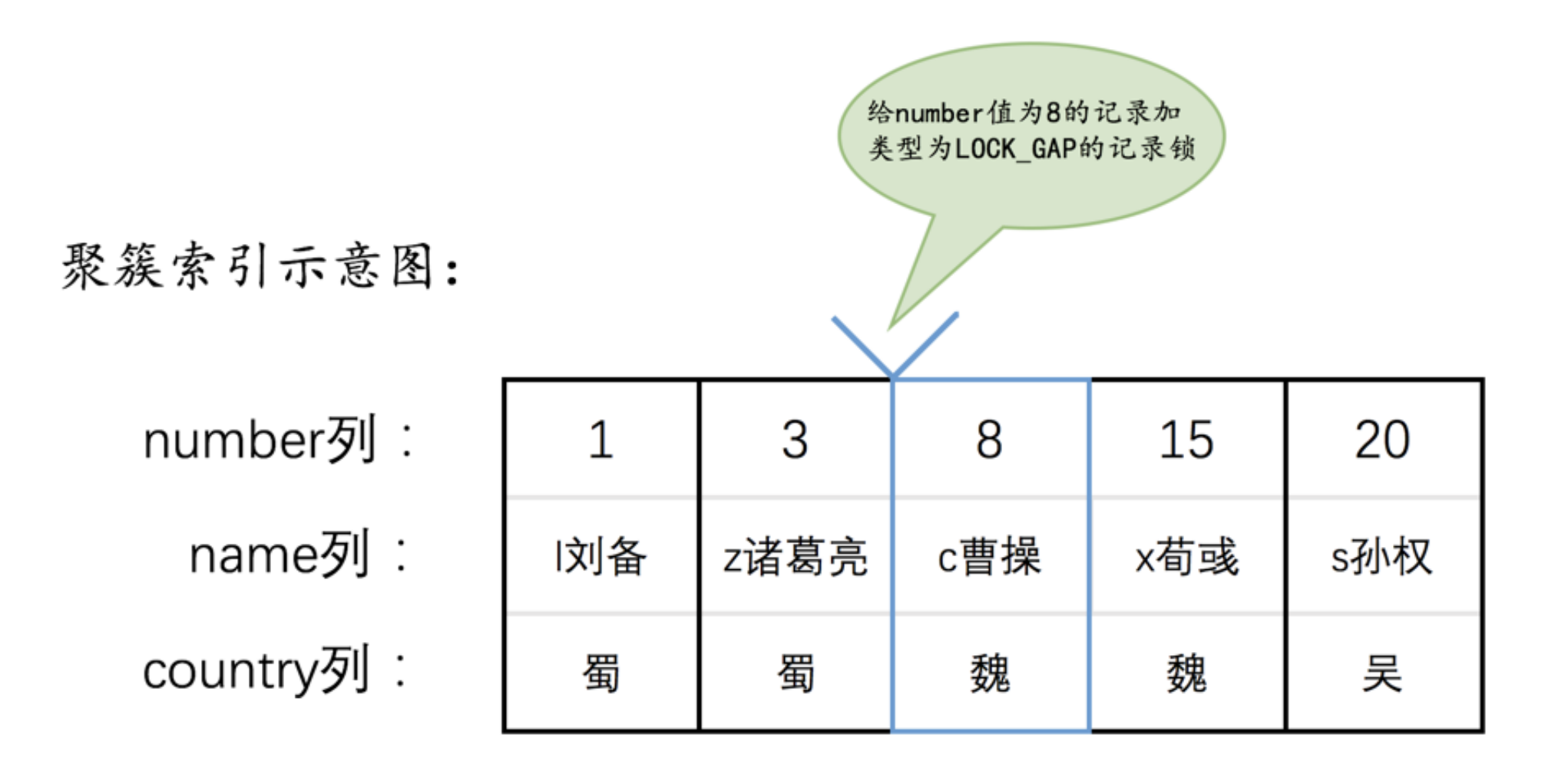 为 number 为 3 、 8 的记录生成的 锁结构 :