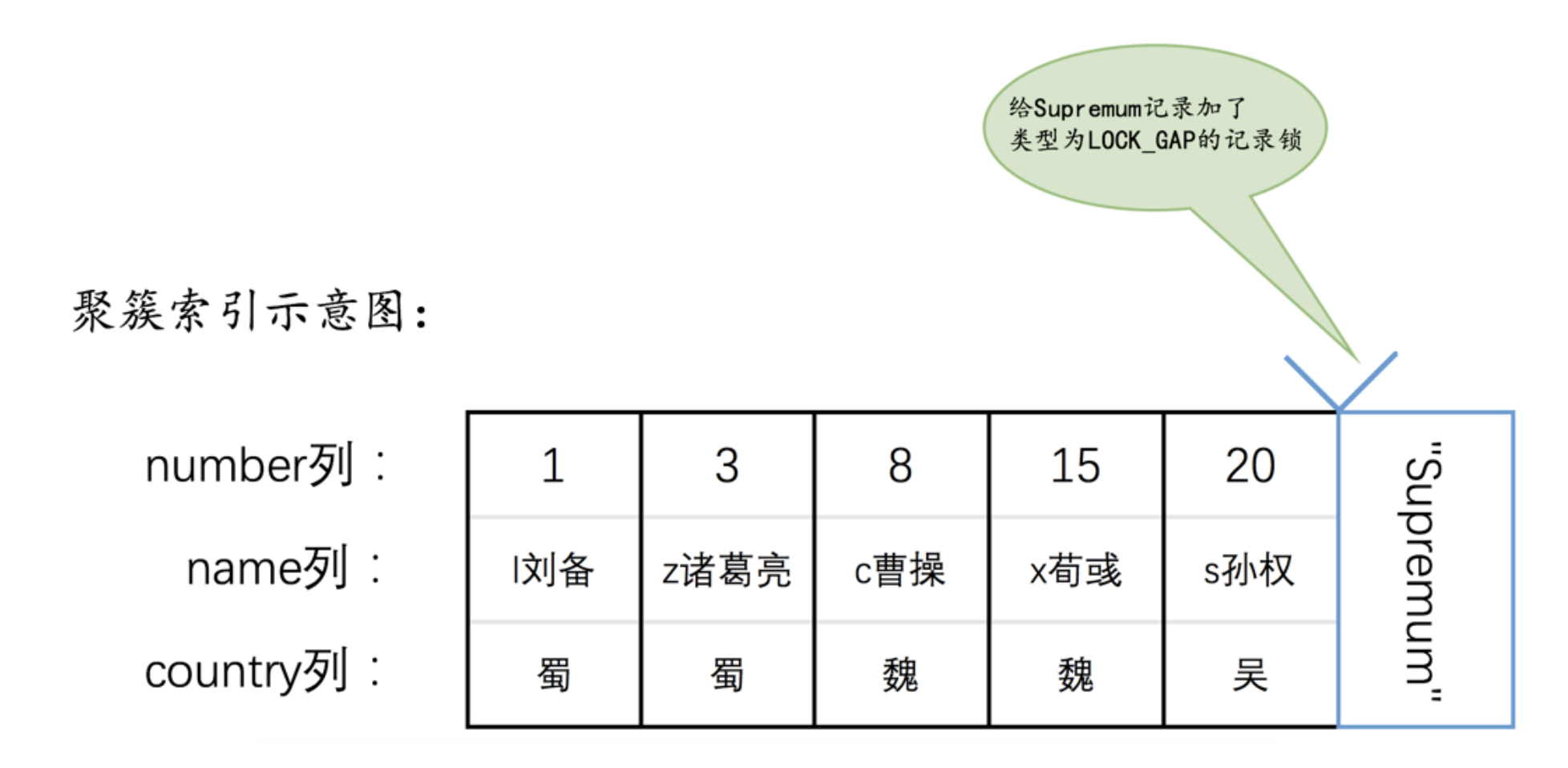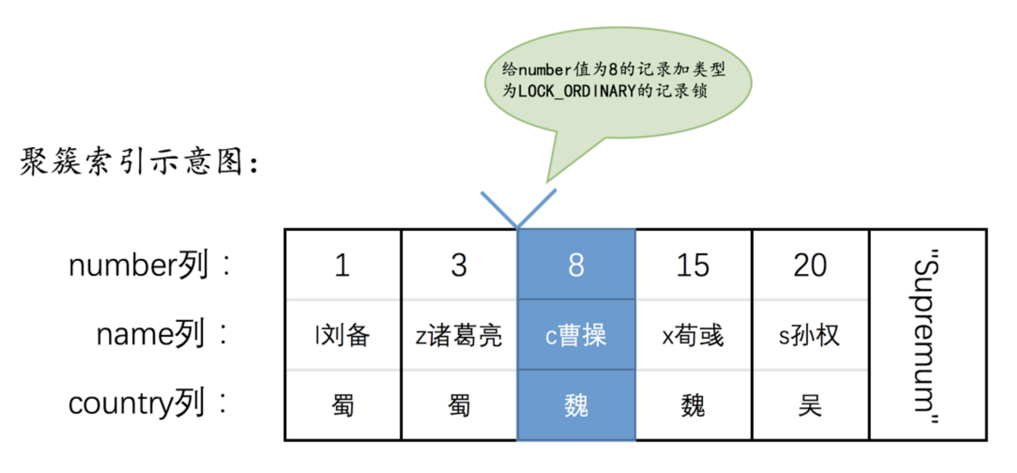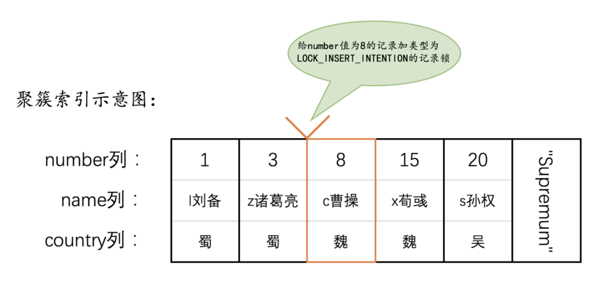 上面事务 T2 在对 number 值分别为 3、8、15 这三条记录加锁的情景中,是按照先对 number 值为 3 的记录加锁、再对 number 值为 8 的记录加锁,最后对 number 值为 15 的记录加锁的顺序进行的,如果我们一开始就对 number 值为 15 的记录加锁,那么该事务在为 number 值为 15 的记录生成一个锁结构后,直接就进入等待状态,就不为 number 值为 3、8 的两条记录生成锁结构了。在事务 T1 提交后会把在 number 值为 15 的记录上获取的锁释放掉,然后事务 T2 就可以获取该记录上的锁,这时再对 number 值为 3、8 的两条记录加锁时,就可以复用之前为 number 值为 15 的记录加锁时生成的锁结构了。