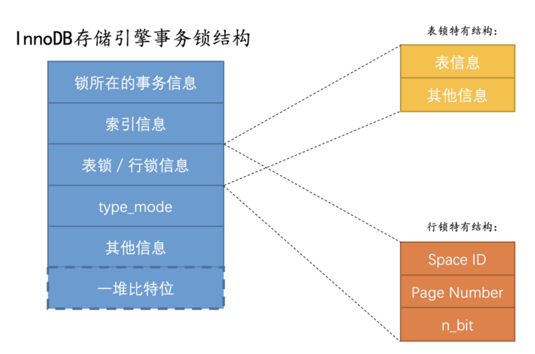 表锁结构 和 行锁结构 在这个位置的内容是不同的:
