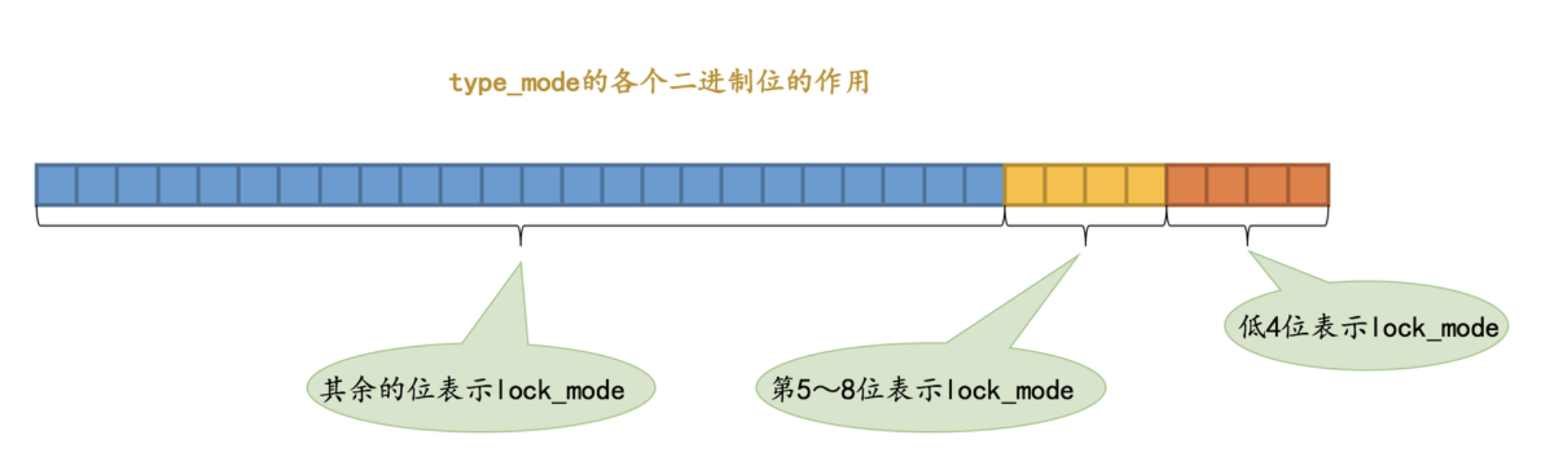 type_mode值。由于可以获取到锁,所以 is_waiting 属性为 false ,也就是 LOCK_WAIT 代表的二进制位被置0。所以: