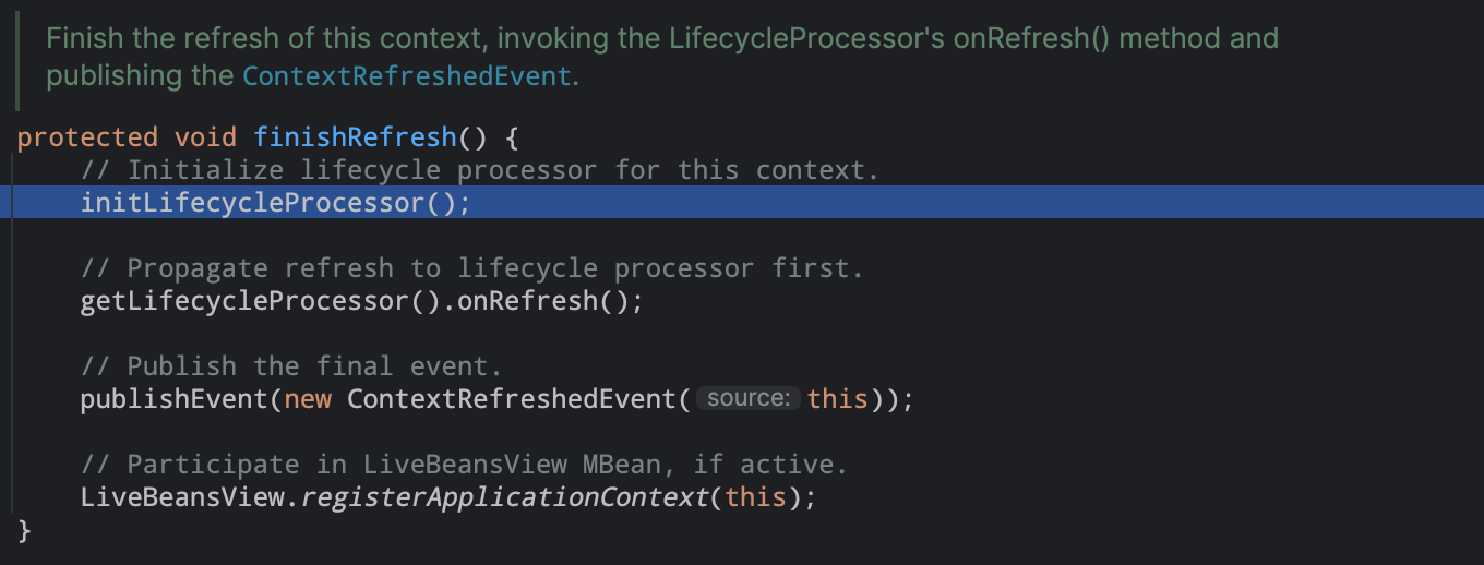 调用生命周期处理器的onRefresh()方法,并且发布一个ContextRefreshEvent类型事件。
