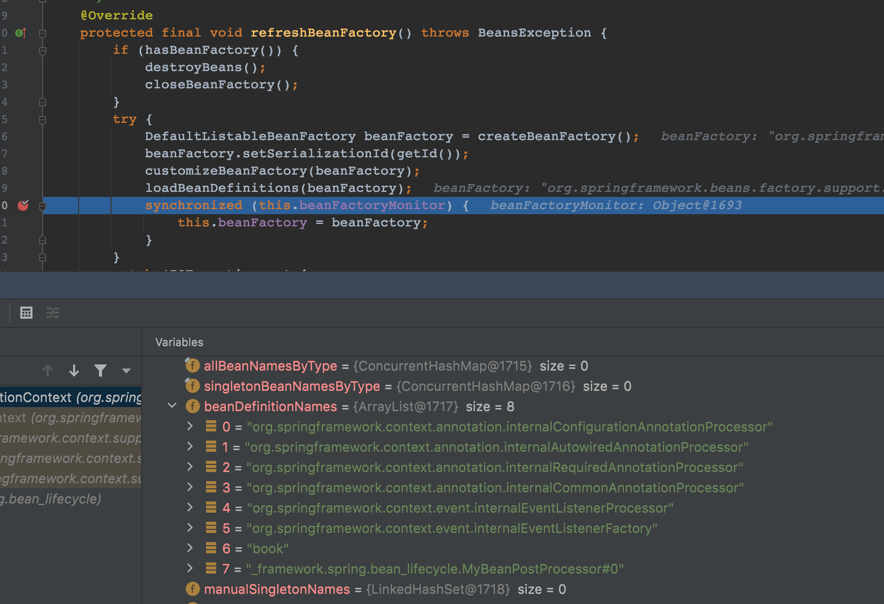 | applyBeanPostProcessorsAfterInitialization | - | MyBeanPostProcessor.postProcessAfterInitialization invoke | |